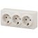 Розетка тройная 3-я серии Эра Эксперт открытой установки цвет слоновая кость 11-2208-02. Номинальные характеристики 16А 250В. Устройство выполнено из качественного поликарбоната, оснащёно уникальными винтовыми клеммами ЭКСПЕРТ для максимально качественного зажима кабеля в механизме.