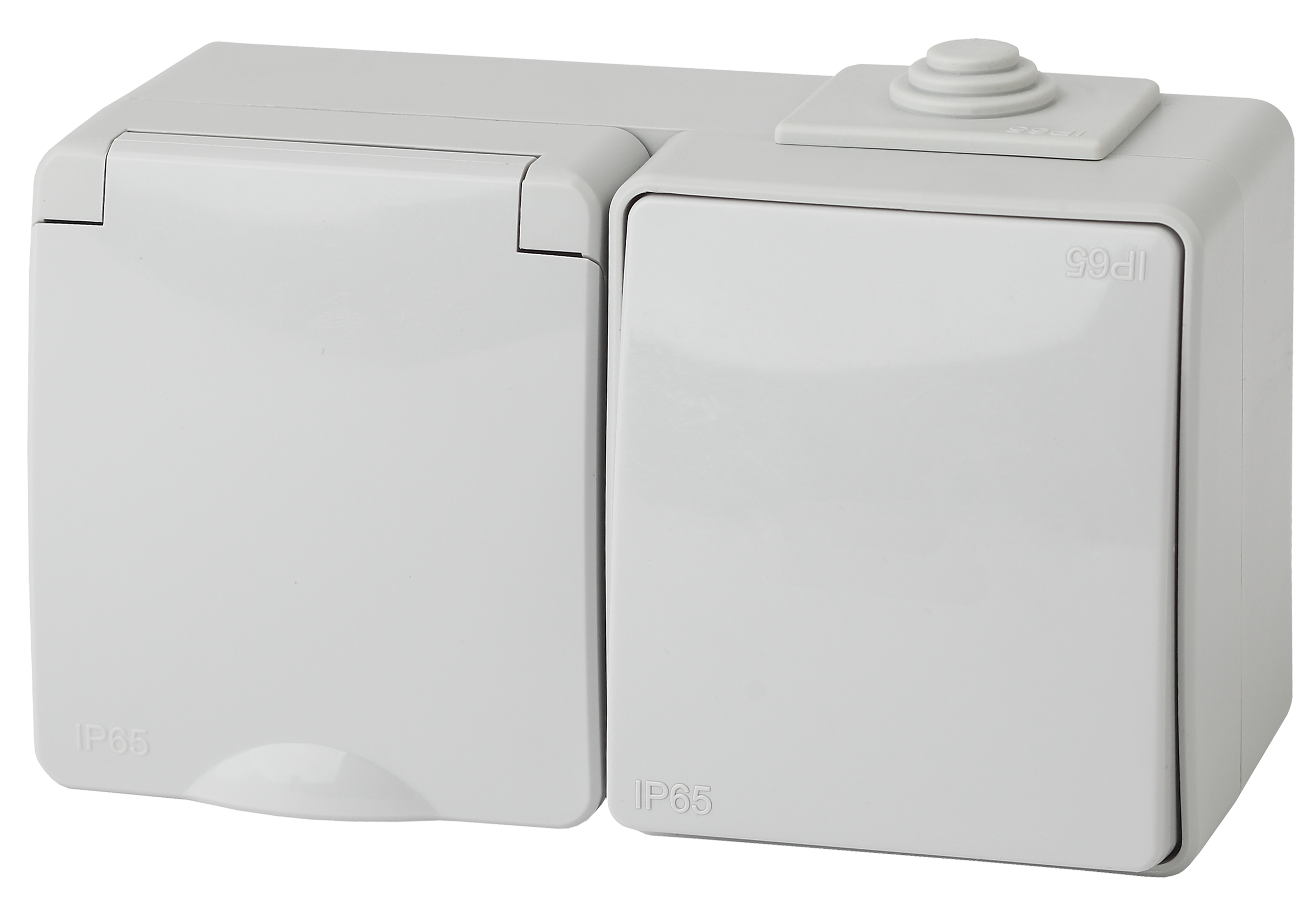 Блок розетка с выключателем влагозащищённый IP65 серии Эра Эксперт открытой установки цвет серый 11-7601-03. Номинальные характеристики 16А 250В . Устройство выполнено из качественного поликарбоната, оснащёно уникальными винтовыми клеммами ЭКСПЕРТ для максимально качественного зажима кабеля в механизме.