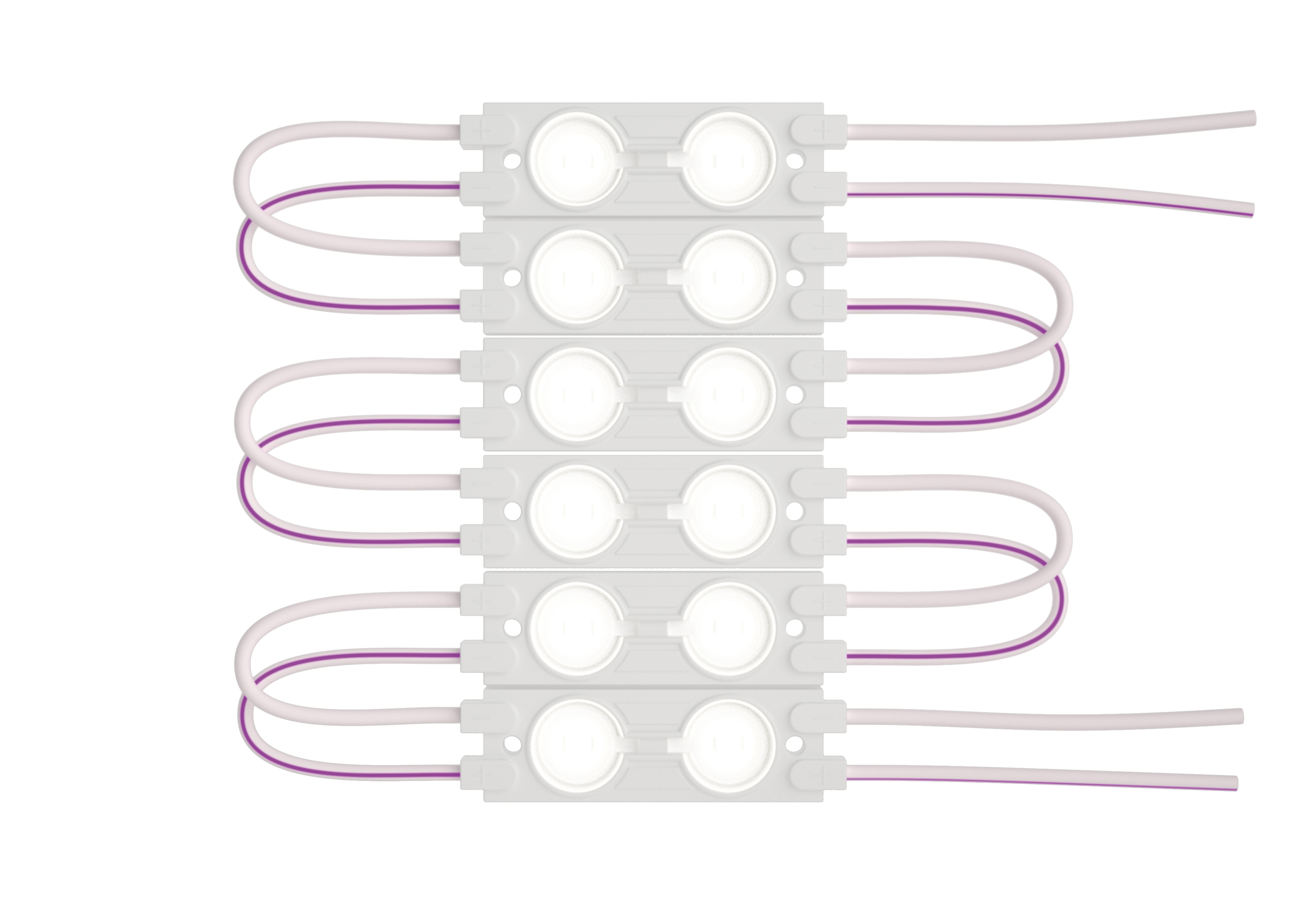 <p>Светодиодные LED-модули - более универсальный аналог светодиодным лентам. В отличие от лент, их можно наклеивать под любыми углами на любую поверхность и свободно менять направление монтажа между каждым модулем.<br />Цепочку LED-модулей можно обрезать после любого модуля без нарушения его работы по оставшейся длине.<br />Это современный способ создания внутреннего освещения, подсветки ниш, лестничного пространства, систем хранения, а так же декоративного и художественного оформления любых объектов и любых форм.<br />Легко и быстро устанавливается на любой гладкой поверхности с помощью скотча, расположенного на оборотной стороне модулей.</p><p>Светодиодные модули закрытого типа в герметичном корпусе из ABS пластика с линзами и платой-радиатором.</p><p>В упаковке находится 4,7 метровая лента из 40 модулей, на каждом модуле расположено по 2 светодиода с цветовой температурой 6500 К. Степень защиты модулей: IP65 применение внутри и снаружи помещений.</p>
