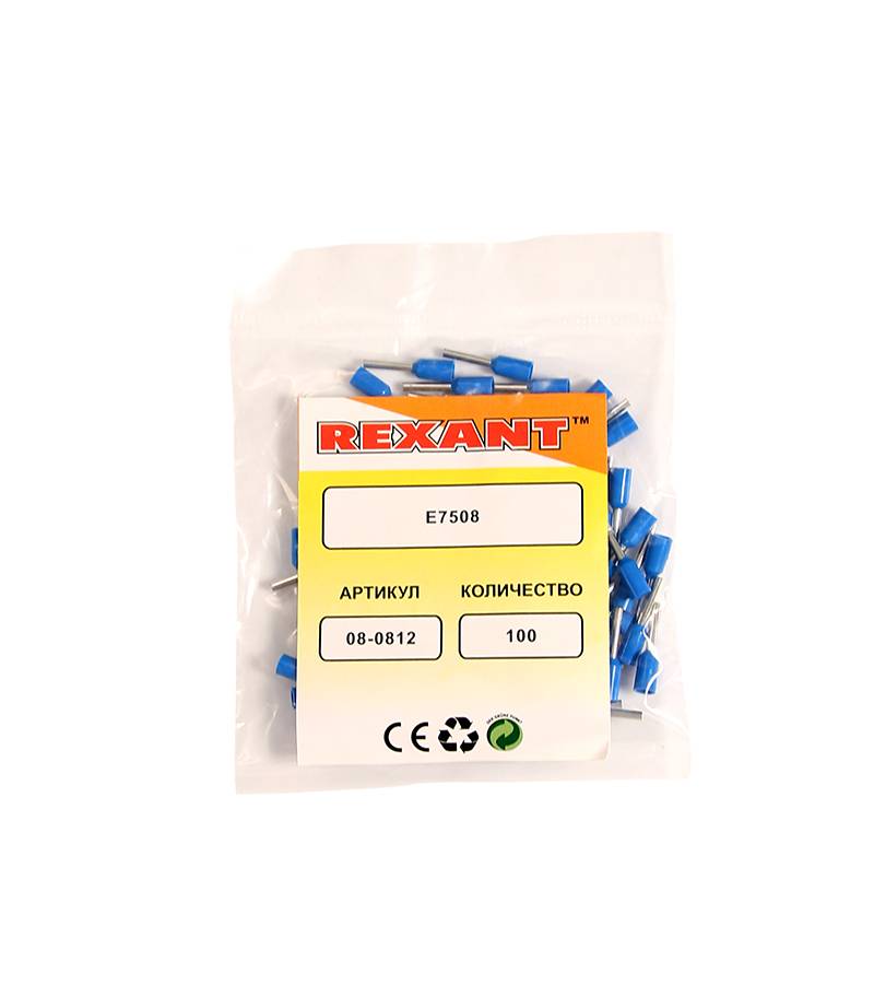Наконечник штыревой втулочный изолированный (НШВИ F-8 мм) 0.75 мм² синий REXANT предназначен для создания быстрого и качественного подключения различного электрооборудования и монтажа электросетей. Такой современный способ подготовки кабеля к соединению заменяет процесс облуживания или скрутки многожильных медных проводов, формируя целостное окончание кабеля с последующим подключением промышленного или бытового электрооборудования. Втулочный наконечник состоит из латуни, с поверхностным электролитическим лужением, и рассчитан на монтаж одного проводника с соответствующим сечением под опрессовку. Предварительно зачищенная жила заводится внутрь латунной втулки и обжимается специальными пресс-клещами (ht-864 арт.12-3202, 12-3202-4; ht-866 арт.12-3205; ht8 6-4 арт.12-3106; ht-301E арт.12-3113, 12-3114, 12-3013) в считанные секунды. Для удобства заведения многожильного провода внутрь латунной втулки предусмотрена манжета конической формы, изготовленная из поливинилхлорида (ПВХ), обеспечивающая надежную защиту соединения от влаги и других внешних воздействий.