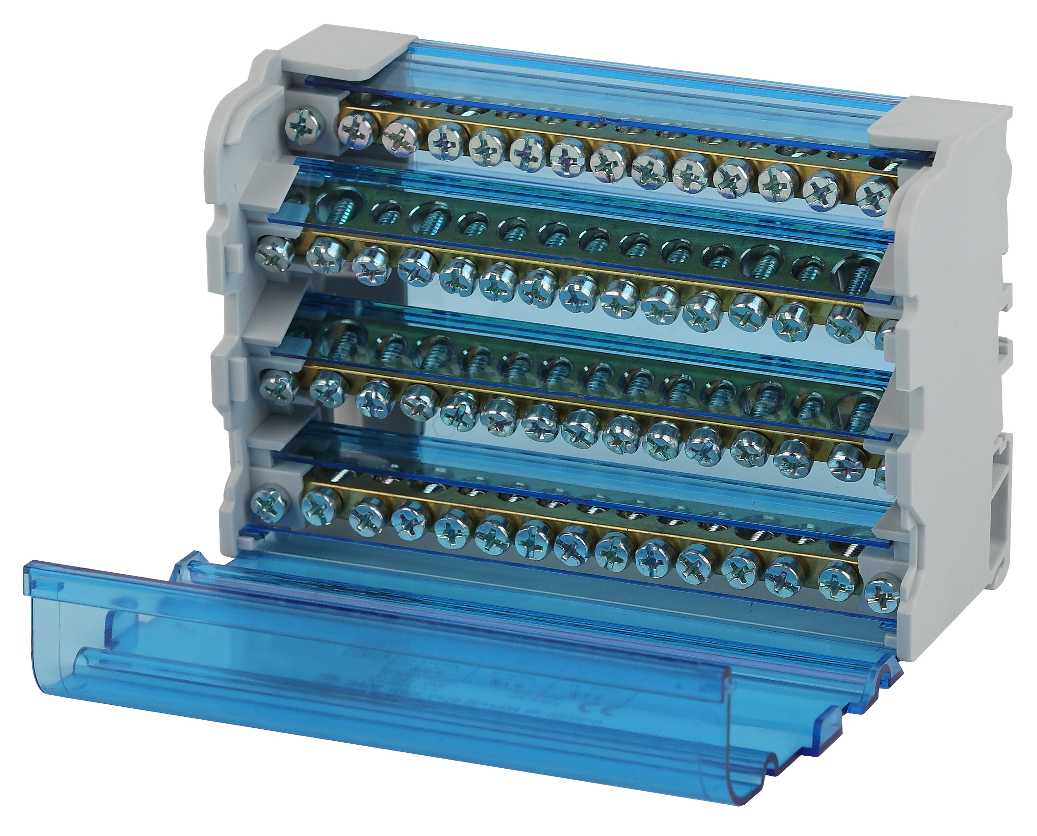 Шины выполнены из высококачественной латуни, изолирующая задняя панель и прозрачная защитная крышка выполнены из самозатухающего пластика. Применяются при комплектации щитового оборудования для подсоединения нулевого провода, провода заземления и фазных проводников. Способы установки: - на монтажную DIN-рейку 35 мм; - на панель щита двумя винтами;