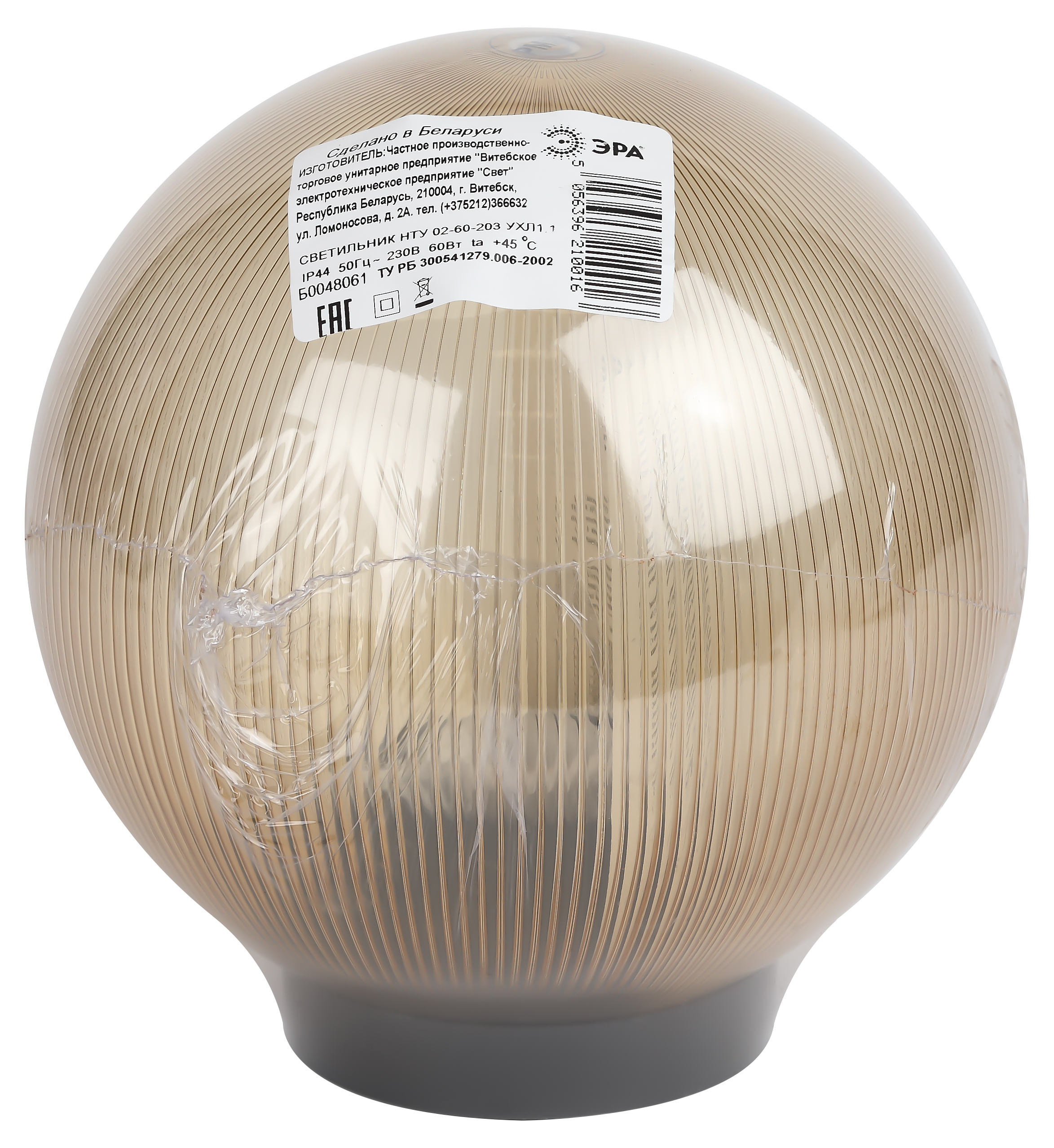 Светильник предназначен для декоративной подсветки садово-парковых зон, прогулочных дорожек, коттеджей, функционально-декоративного освещения скверов, парков и бульваров, а также для подсветки фасадов зданий, архитектурных памятников и различных строений. Дизайн с учетом европейских тенденций в освещении. Не подвержен коррозии, деформации под воздействием погодных условий.<br/><br/>Светильник уличный НТУ 02-60-203 ЭРА / Cветильник садовый Шар золотистый / Фонарь уличный напольный D200mm, Е27