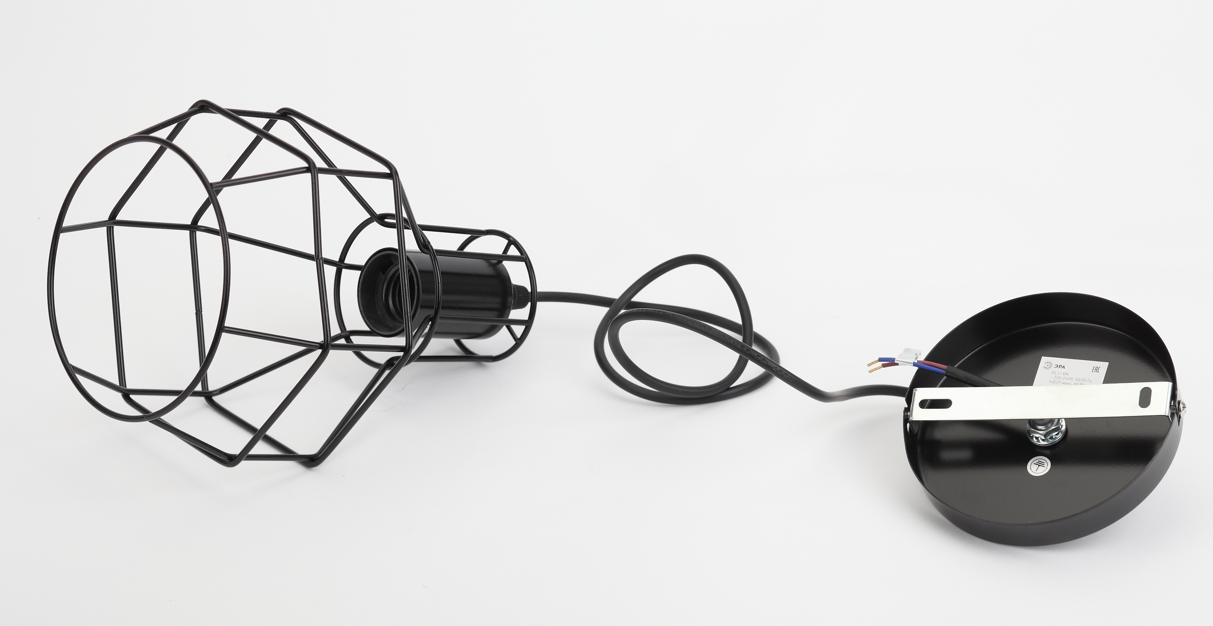 <p>Черный подвесной светильник PL11 BK компании Эра отличается выразительным дизайном, благодаря чему органично дополнит интерьер в стиле лофт или хай-тек. Он выполнен в форме решетки с угловатыми сторонами. Длинный провод позволяет размещать лампу на высоких потолках; в помещениях со стандартными потолками подобная лампа будет создавать пространство с ярким светом. Модель имеет цоколь Е27, подходит для лампы накаливания 60 Вт внутри помещений. Черный подвесной светильник впишется в интерьер кафе, кухни, столовой, балкона или магазина. Данная модель наилучшим образом сочетается с филаментной лампой. </p>