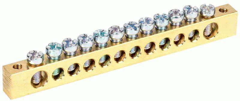 Шина PEN "земля-ноль" 8х12мм 12/2 (12групп/крепеж по краям) IEK YNN21-12-100