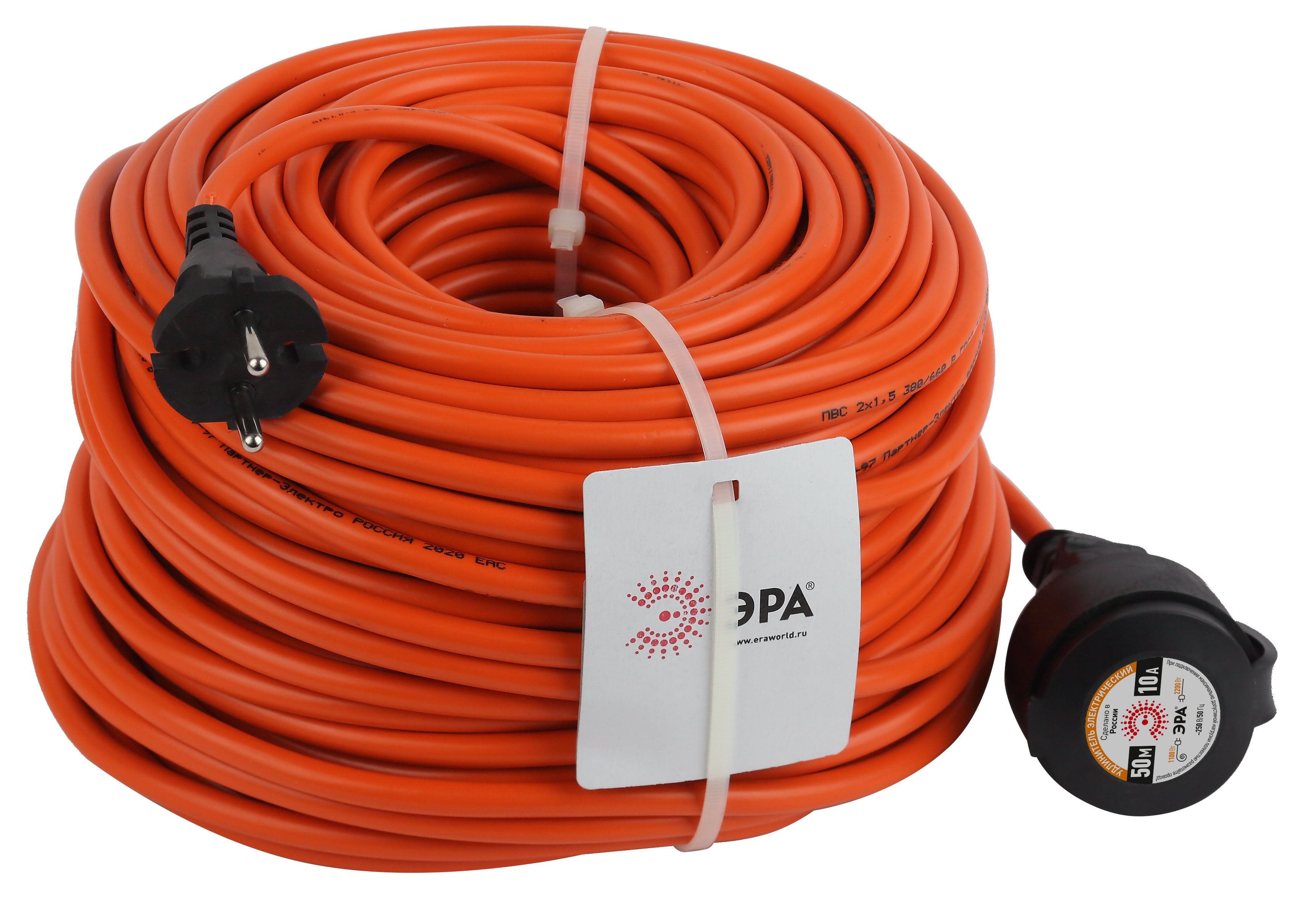 <p>Удлинитель силовой в бухте ЭРА UPx-1-2x1.5-50m без заземления, ПВС 2х1,5м2, 1 розетка, 50м, степень защиты IP20. Мощность 10А/2200Вт. Используется для работы на строительных площадках или дачных участках. Удобен при работе с приборами находящимися удаленно от стационарной розетки,. Например, газонокосилки, электрические, пилы, триммеры или электродрели. Провод в удлинителях Эра сделан из 100% меди, что делает его абсолютно пожаробезопасным.</p>