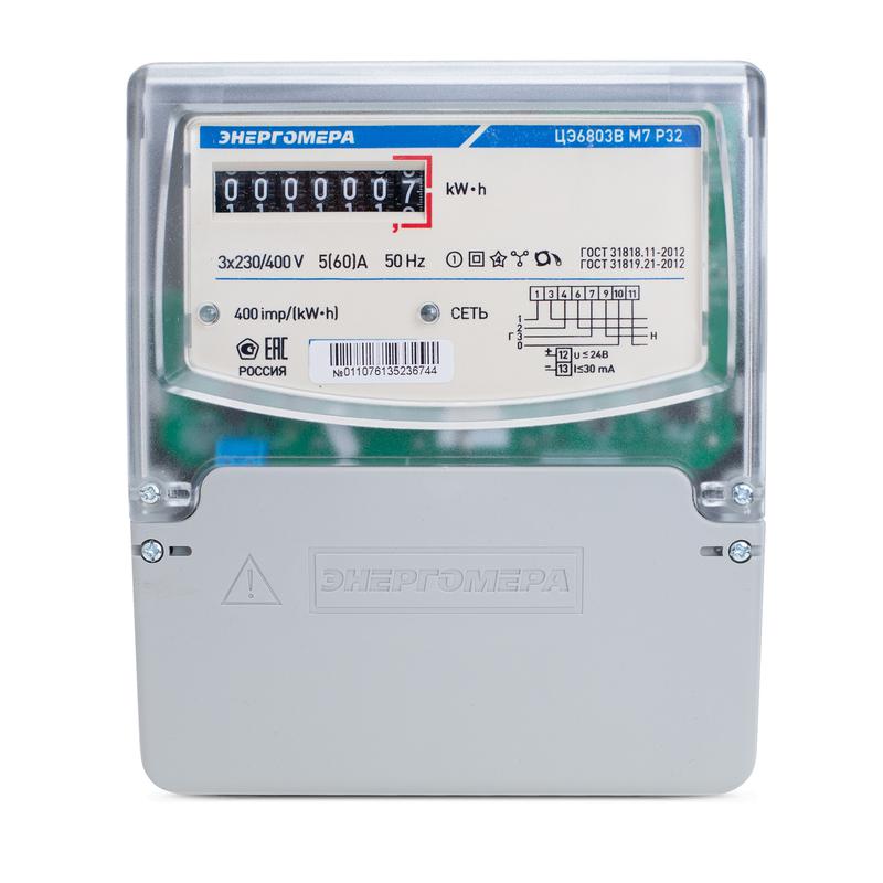 Счетчик ЦЭ-6803В 1 3ф 5-60А 230В 1 класс точн. 1 тариф. 4 пров. М7Р32 на щиток и DIN-рейку Энергомера 101003001011073