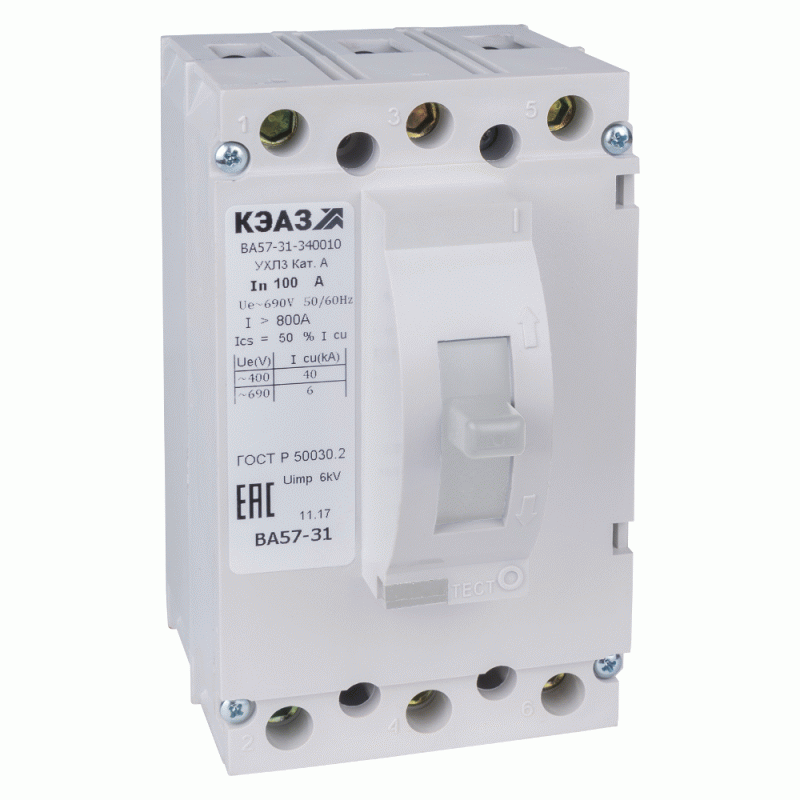 Выключатель автоматический 63А 800Im ВА57-31-340010 УХЛ3 690В AC КЭАЗ 108440