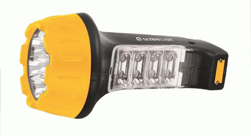 Фонарь LED3818 (аккум 220В черн./желт. 7+8 LED 2 режима SLA) Ultraflash 10973