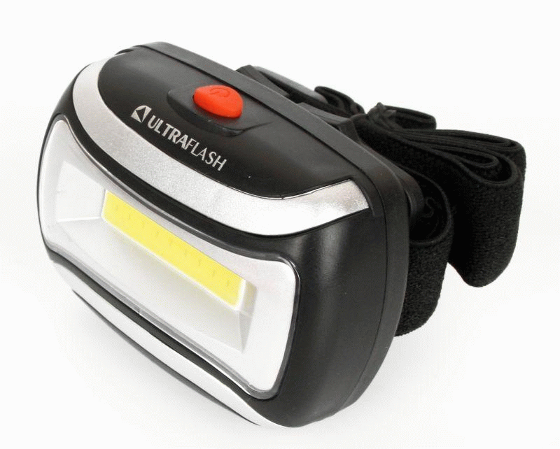Фонарь налобный LED 5380 (3Вт COB LED 3 режима черн. пласт. пакет) Ultraflash 12870