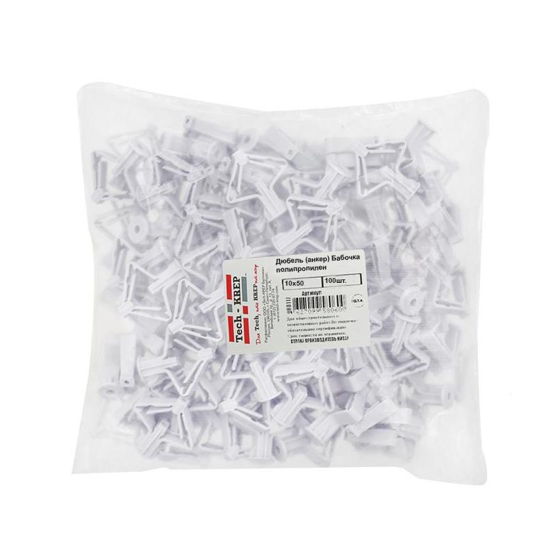 Дюбель (анкер) бабочка 10х50 полипропилен (уп.100шт) пакет Tech-Krep 111494