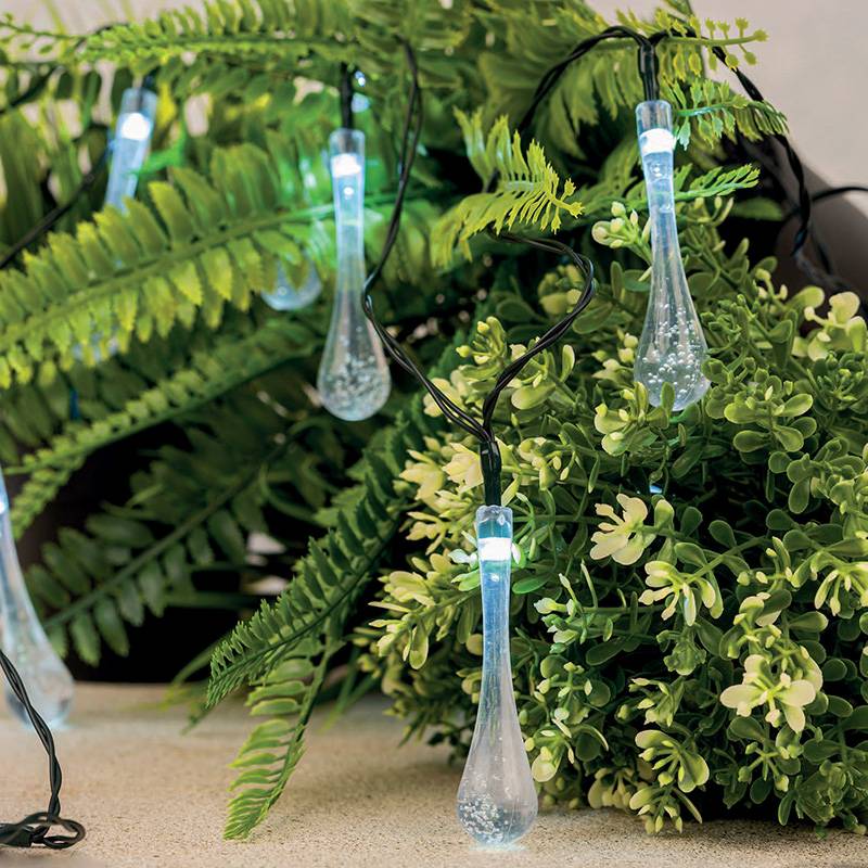 Каскад Lamper Летний Дождь LED 6,9 м с выносной солнечной панелью 2 м и аккумулятором, IP65, холодное белое свечение