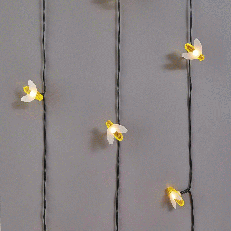 Каскад Lamper Янтарные Пчелы LED 5,8 м с выносной солнечной панелью 2 м и аккумулятором, IP65, теплое белое свечение