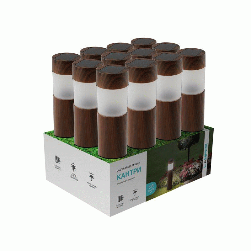 Светильник садовый LAMPER Кантри LED с текстурой дуба, с солнечной панелью и аккумулятором