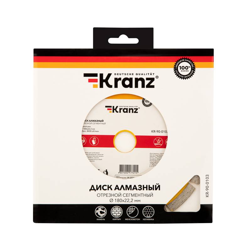 Диск алмазный отрезной сегментный 180x22.2x2.2x10 мм KRANZ