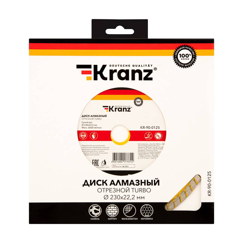 Диск алмазный отрезной Turbo 230x22.2x2.8x10 мм KRANZ