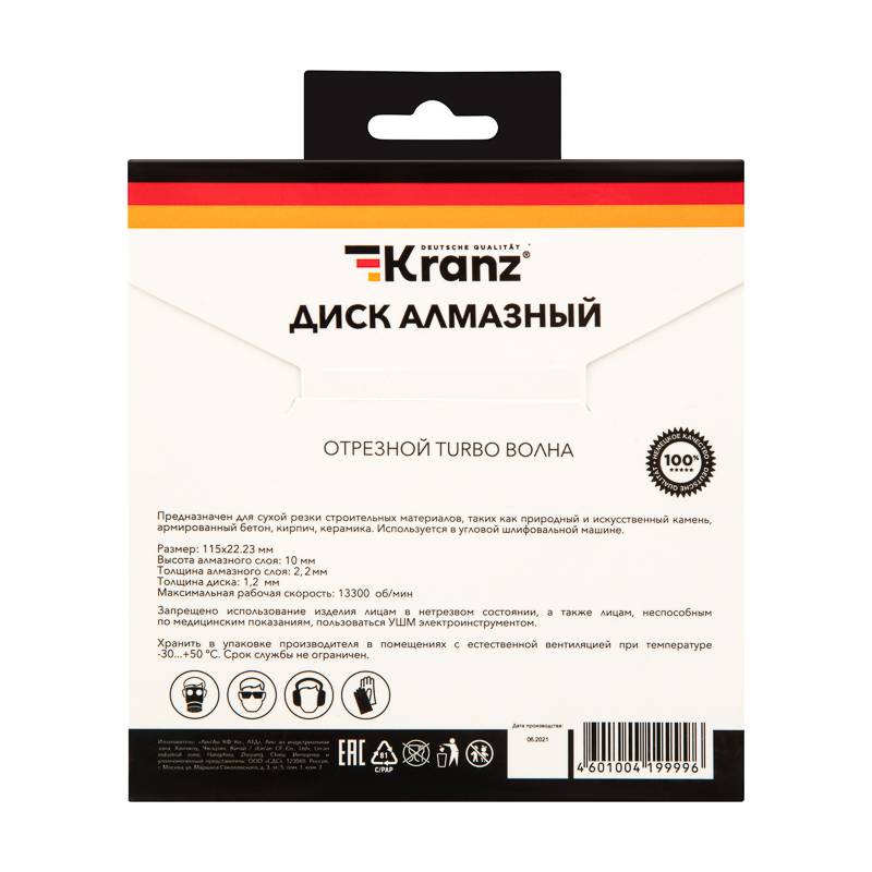 Диск алмазный отрезной Turbo волна 115x22.2x2x10 мм KRANZ