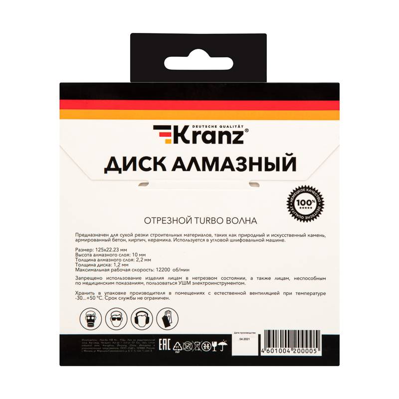 Диск алмазный отрезной Turbo волна 125x22.2x2x10 мм KRANZ