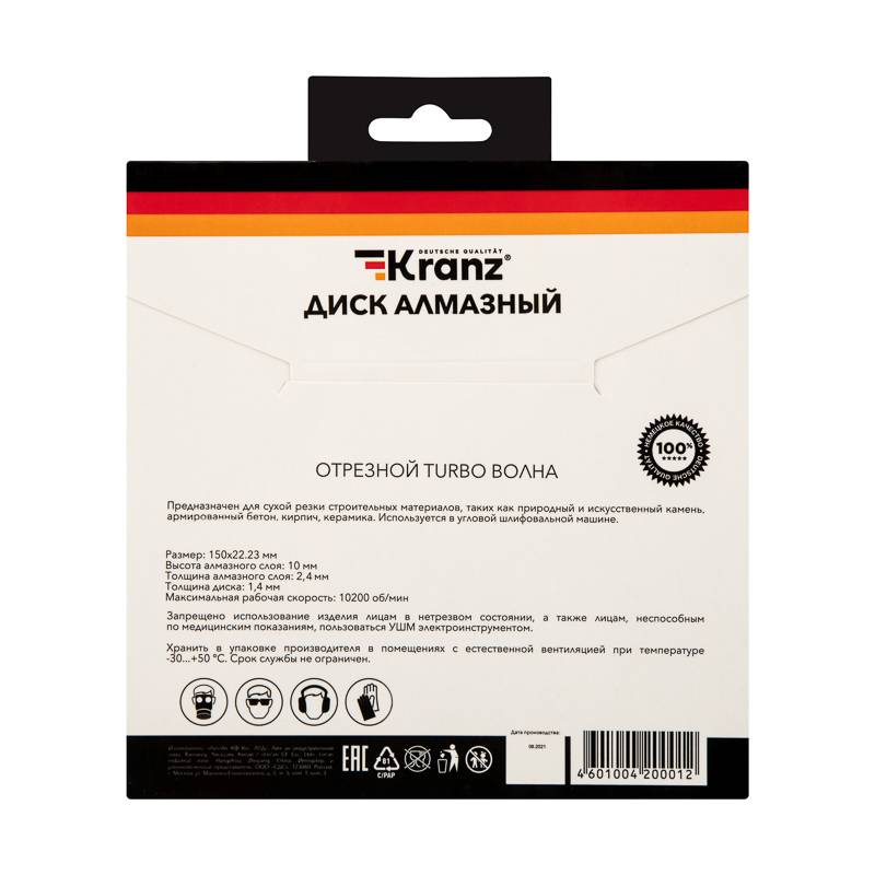 Диск алмазный отрезной Turbo волна 150x22.2x2.2x10 мм KRANZ