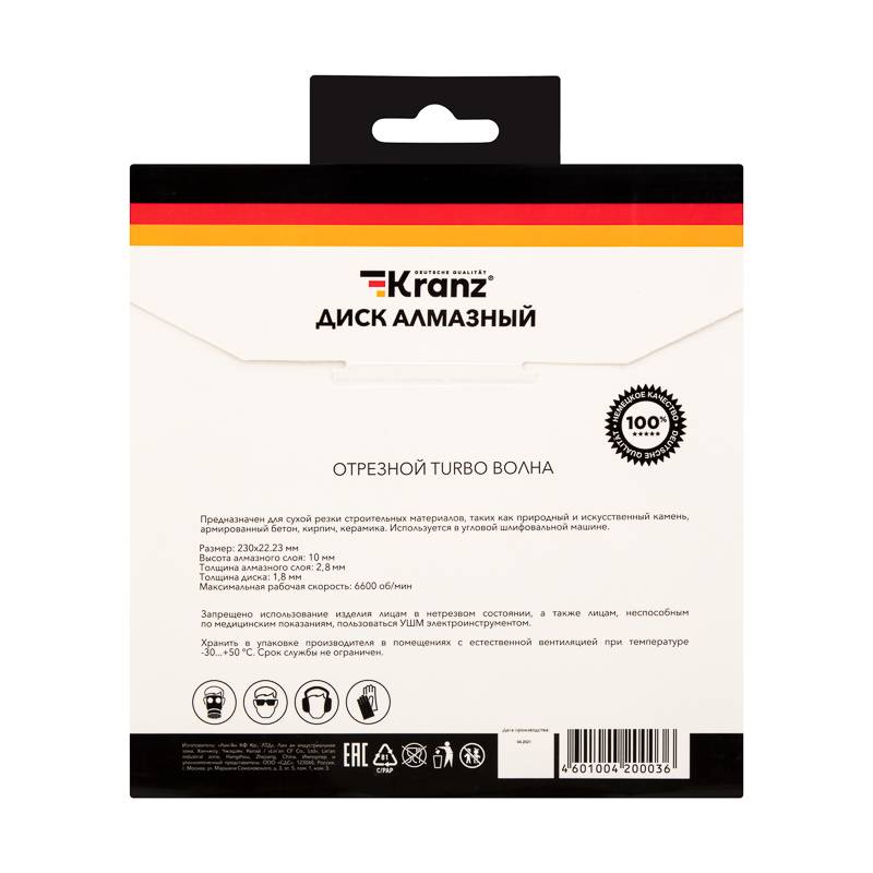 Диск алмазный отрезной Turbo волна 230x22.2x2.4x10 мм KRANZ