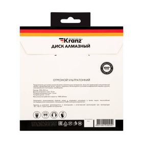 Диск алмазный отрезной ультратонкий 230x25.4/22.2x2x10 мм KRANZ