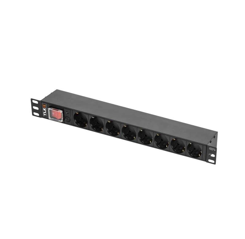 Блок розеток 8-м 10А C14 19дюйм 2.5кВт 490х44.4х68мм без шнура предохранитель перекидн. выкл. метал. корпус TLK TLK-RSC08-MTF-01-BK