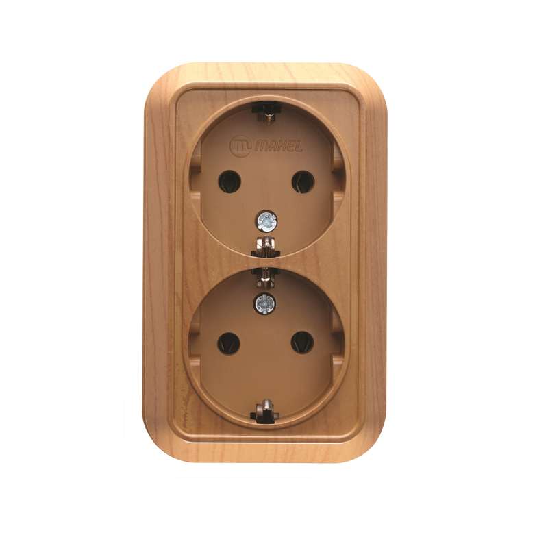 Розетка 2-м ОП 16А IP20 с заземл. дуб Makel 45382