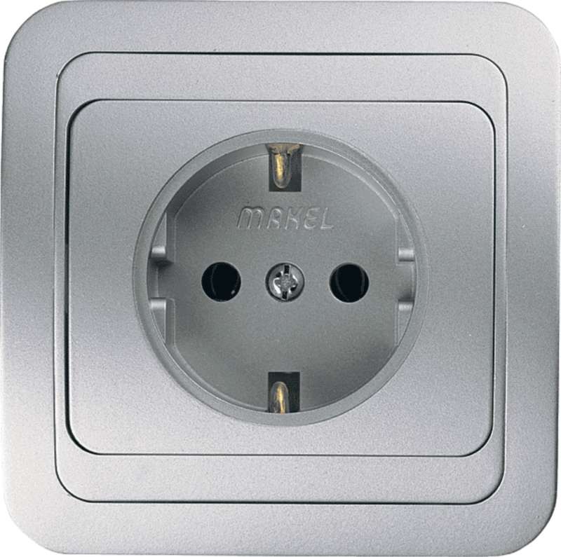 Розетка 1-м СП Mimoza 16А IP20 с заземл. серебр./серебр. Makel 23408
