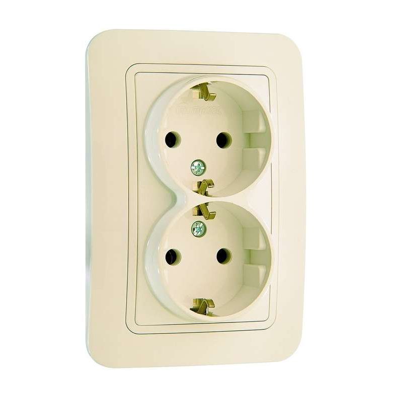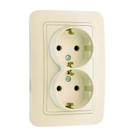 Розетка 2-м ОП 16А IP44 с заземл. с крышкой п/герм. крем. Makel 18254