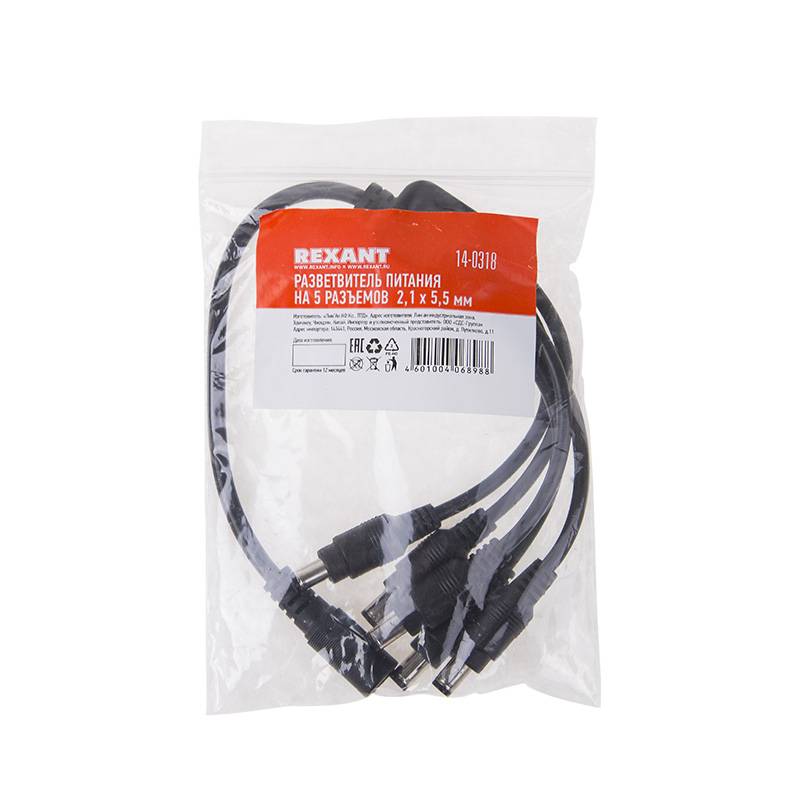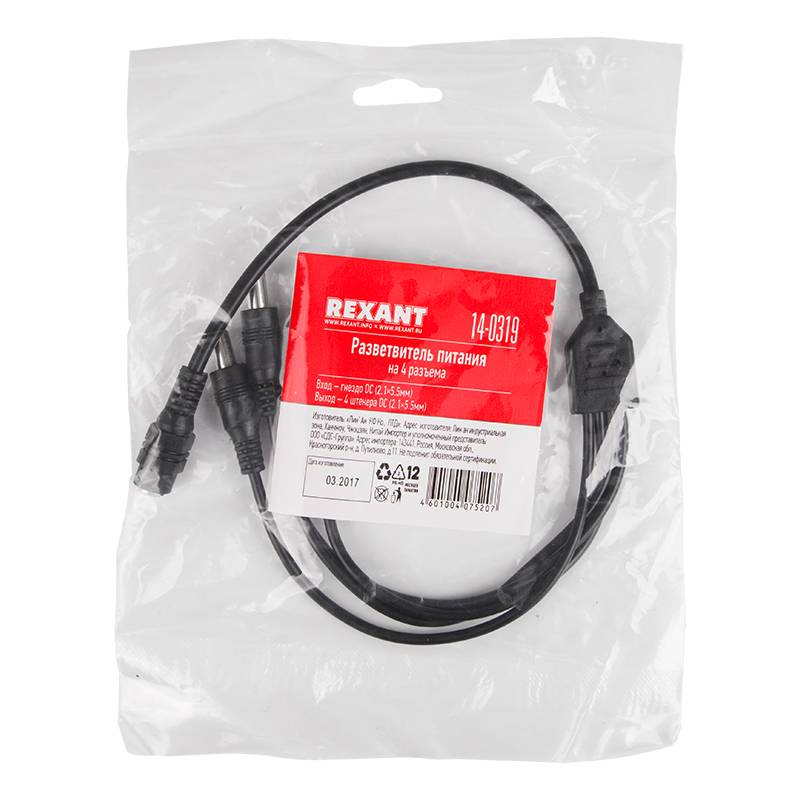 Разъем питания DC штекер 2,1х5,5мм с проводом и манжетой 1м REXANT