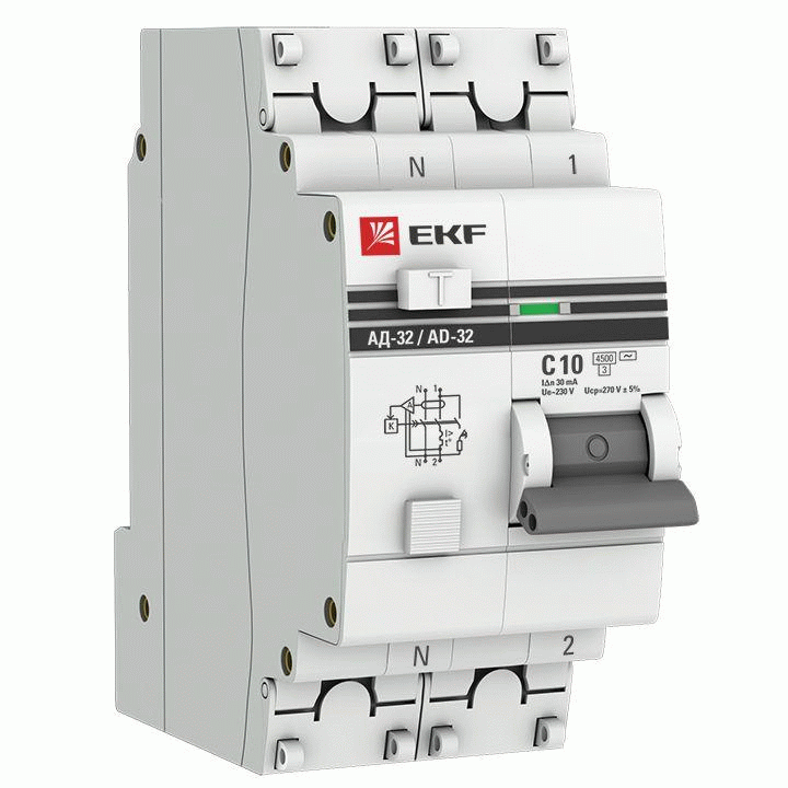 Выключатель автоматический дифференциального тока 2п C 10А 30мА тип AC 4.5кА АД-32 защита 270В электрон. PROxima EKF DA32-10-30-pro