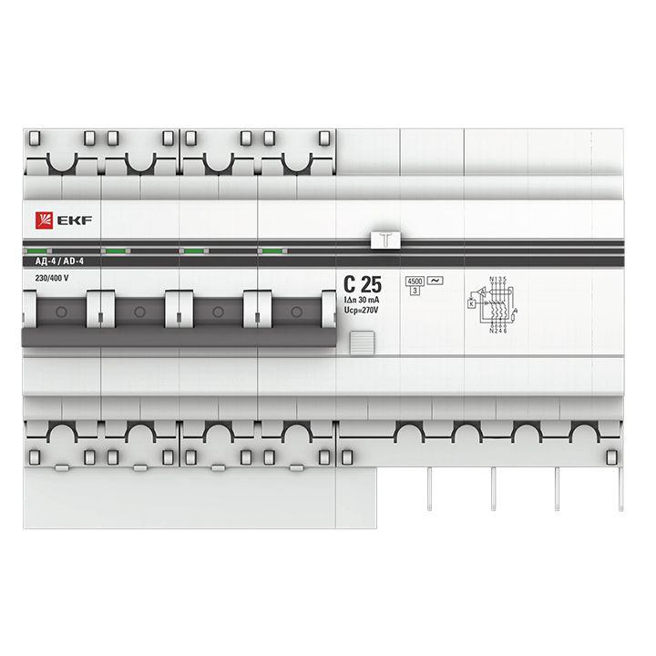 Выключатель автоматический дифференциального тока 4п 7.5мод. C 25А 30мА тип AC 4.5кА АД-4 PROxima EKF DA4-25-30-pro