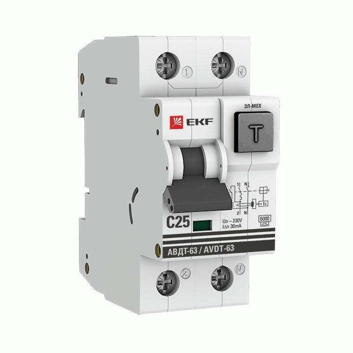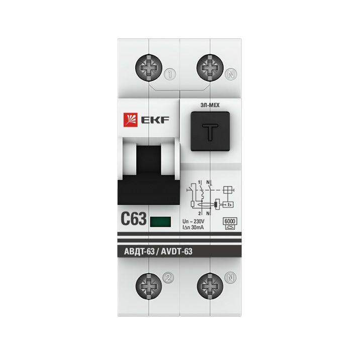 Выключатель автоматический дифференциального тока 2п C 32А 30мА тип A 6кА АВДТ-63 2мод. электрон. PROxima EKF DA63-32-30e