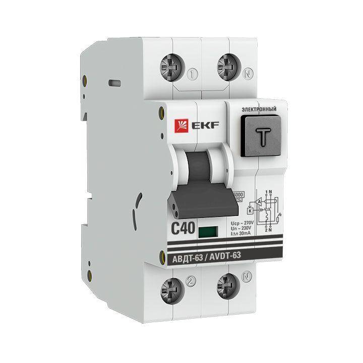 Выключатель автоматический дифференциального тока 2п C 40А 30мА тип AC 4.5кА АД-32 2мод. защита 270В электрон. PROxima EKF DA32-40-30-pro