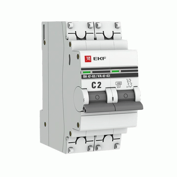 Выключатель автоматический модульный 2п C 2А 4.5кА ВА 47-63 PROxima EKF mcb4763-2-02C-pro