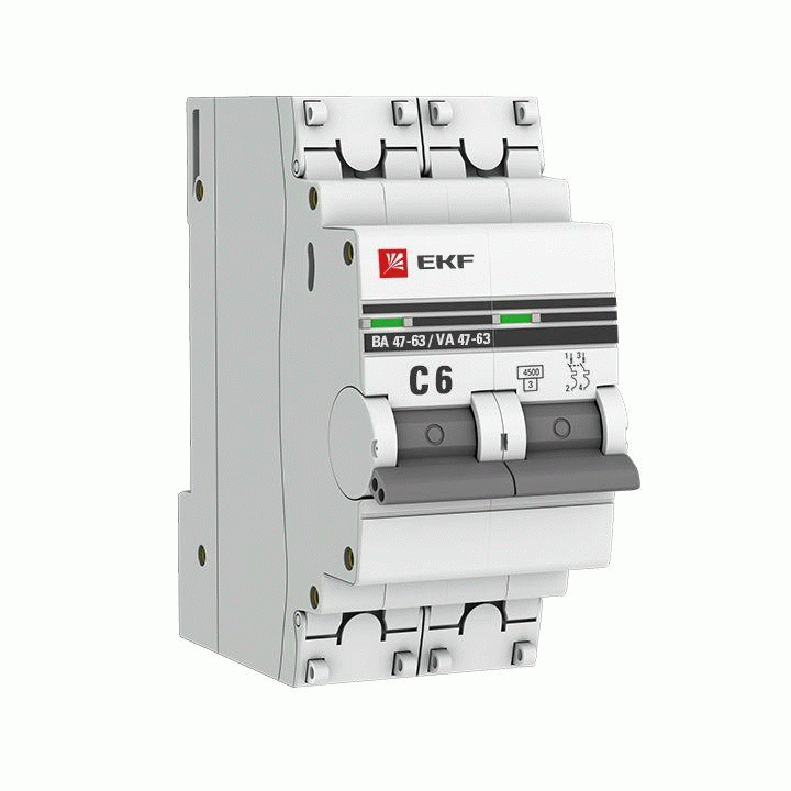 Выключатель автоматический модульный 2п C 6А 4.5кА ВА 47-63 PROxima EKF mcb4763-2-06C-pro