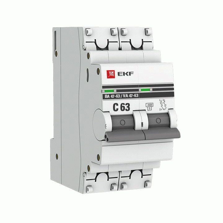 Выключатель автоматический модульный 2п C 63А 4.5кА ВА 47-63 PROxima EKF mcb4763-2-63C-pro