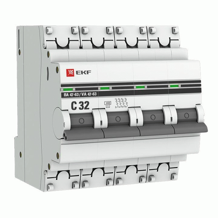 Выключатель автоматический модульный 4п C 32А 4.5кА ВА 47-63 PROxima EKF mcb4763-4-32C-pro