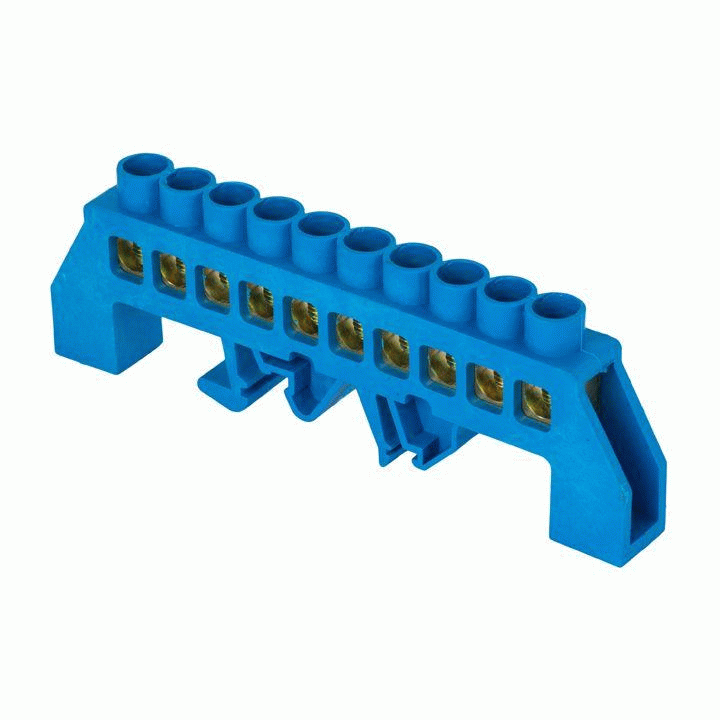 Шина нулевая N 8х12 10 отвер. латунь син. нейлоновый корпус комбинированный PROxima EKF sn0-125-10-dn