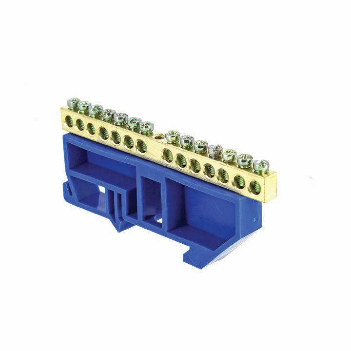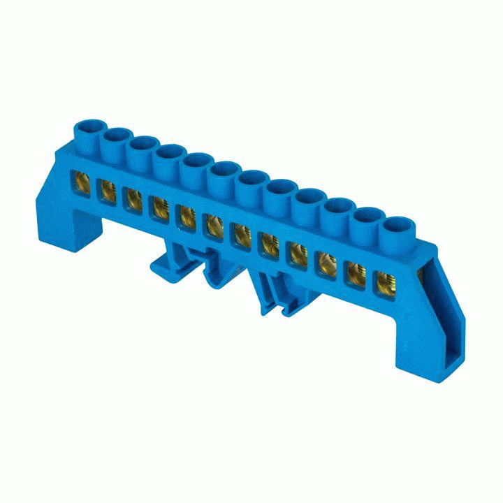 Шина нулевая N 8х12 12 отвер. латунь син. нейлоновый корпус комбинированный PROxima EKF sn0-125-12-dn
