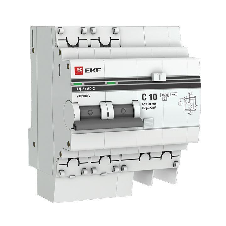 Выключатель автоматический дифференциального тока 2п 4мод. C 10А 30мА тип AC 4.5кА АД-2 PROxima EKF DA2-10-30-pro