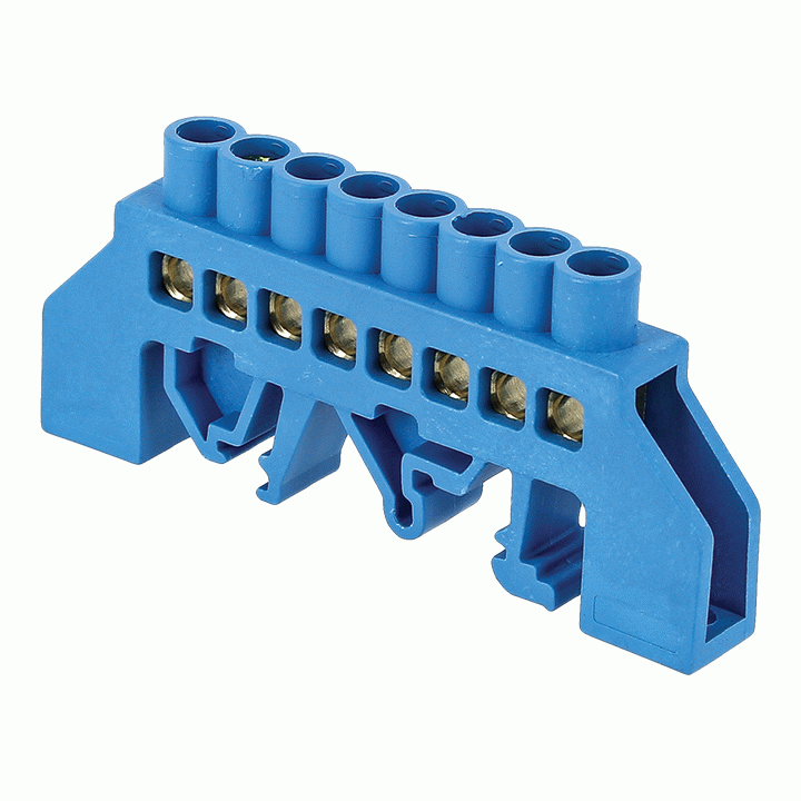 Шина нулевая N 8х12 8 отвер. латунь син. нейлоновый корпус комбинированный PROxima EKF sn0-125-8-dn