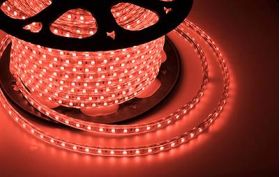 LED лента 220 В, 10х7 мм, IP67, SMD 2835, 60 LED/m, цвет свечения красный, бухта 100 м