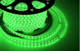 LED лента 220 В, 10х7 мм, IP67, SMD 2835, 60 LED/m, цвет свечения зеленый, бухта 100 м