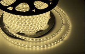 LED лента 220 В, 10х7 мм, IP67, SMD 2835, 60 LED/m, цвет свечения теплый белый, бухта 100 м