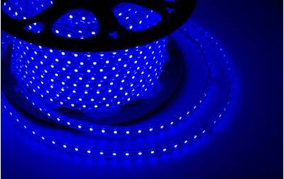 LED лента 220 В, 10х7 мм, IP67, SMD 2835, 60 LED/m, цвет свечения синий, бухта 100 м