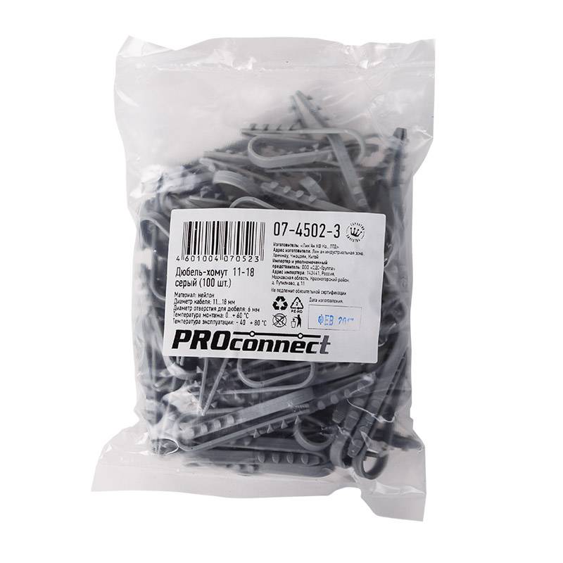 Дюбель-хомут нейлоновый 11-18 мм, серый (100 шт/уп) PROconnect