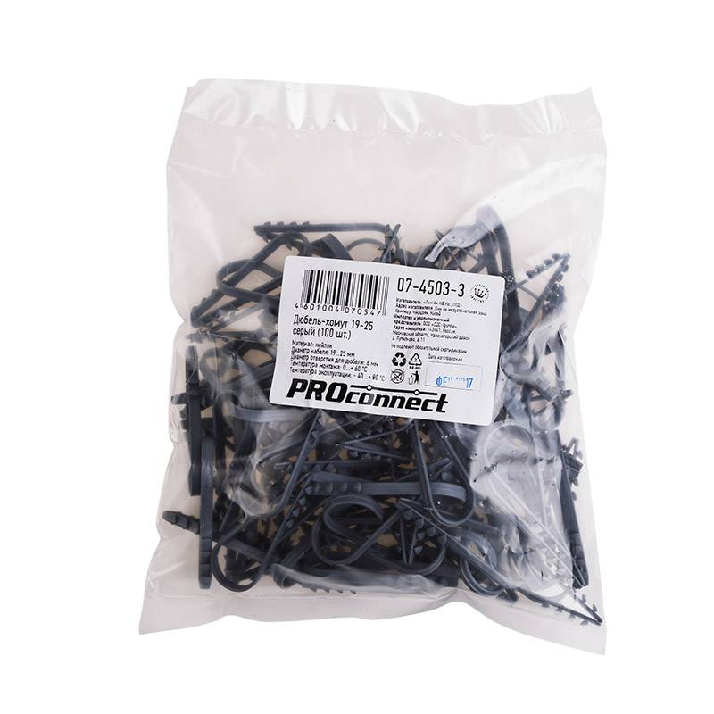 Дюбель-хомут нейлоновый 19-25 мм, серый (100 шт/уп) PROconnect