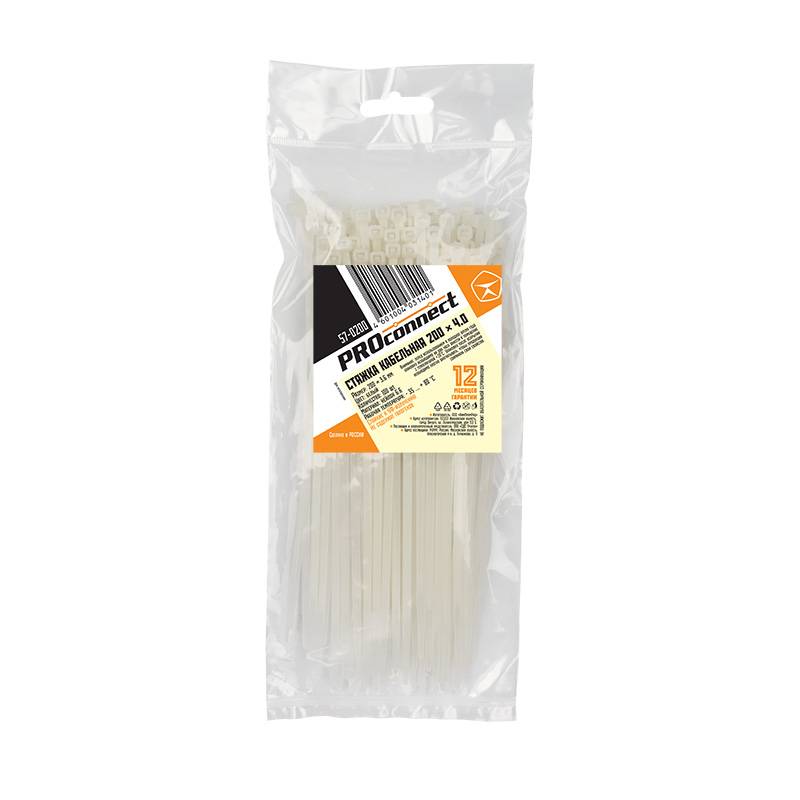 Хомут-стяжка кабельная нейлоновая КСС 200x3,6мм, белая (100 шт/уп) PROconnect