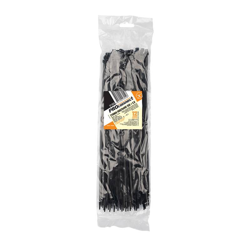 Хомут-стяжка кабельная нейлоновая 350x4,8мм, черная (100 шт/уп) PROconnect