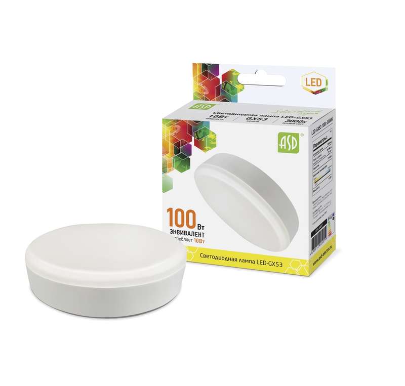 Лампа светодиодная LED-GX53-standard 10Вт таблетка 3000К тепл. бел. GX53 900лм 160-260В ASD 4690612005119
